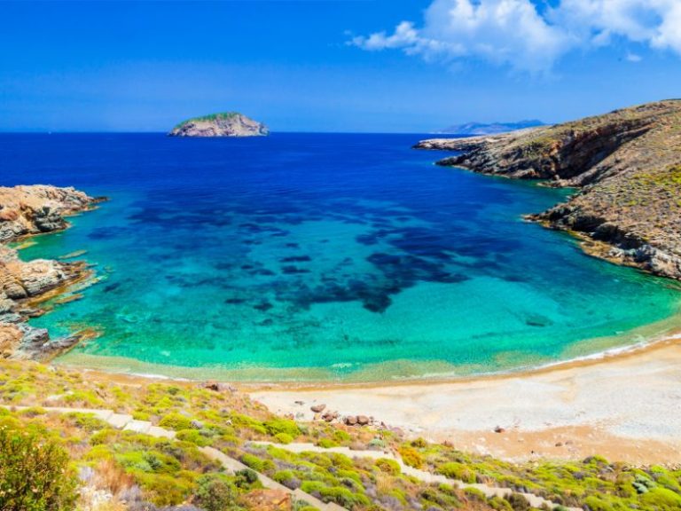 First destination Megalo Livadi, a sandy beach with tamarisk trees for natural shade. Then we cruise southwest to Ganema and Vayia, two beautiful beaches with crystal clear blue waters. We will enjoy swimming and then relax on the boat. Having gathered images and experiences, we set forth for the beach of Agios Sostis, which will be our last stop.